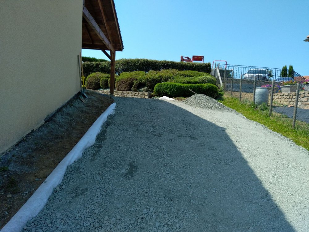 Terrassement d'une voie d'accès pour véhicule d'environ 120m² avec décaissement de la terre.